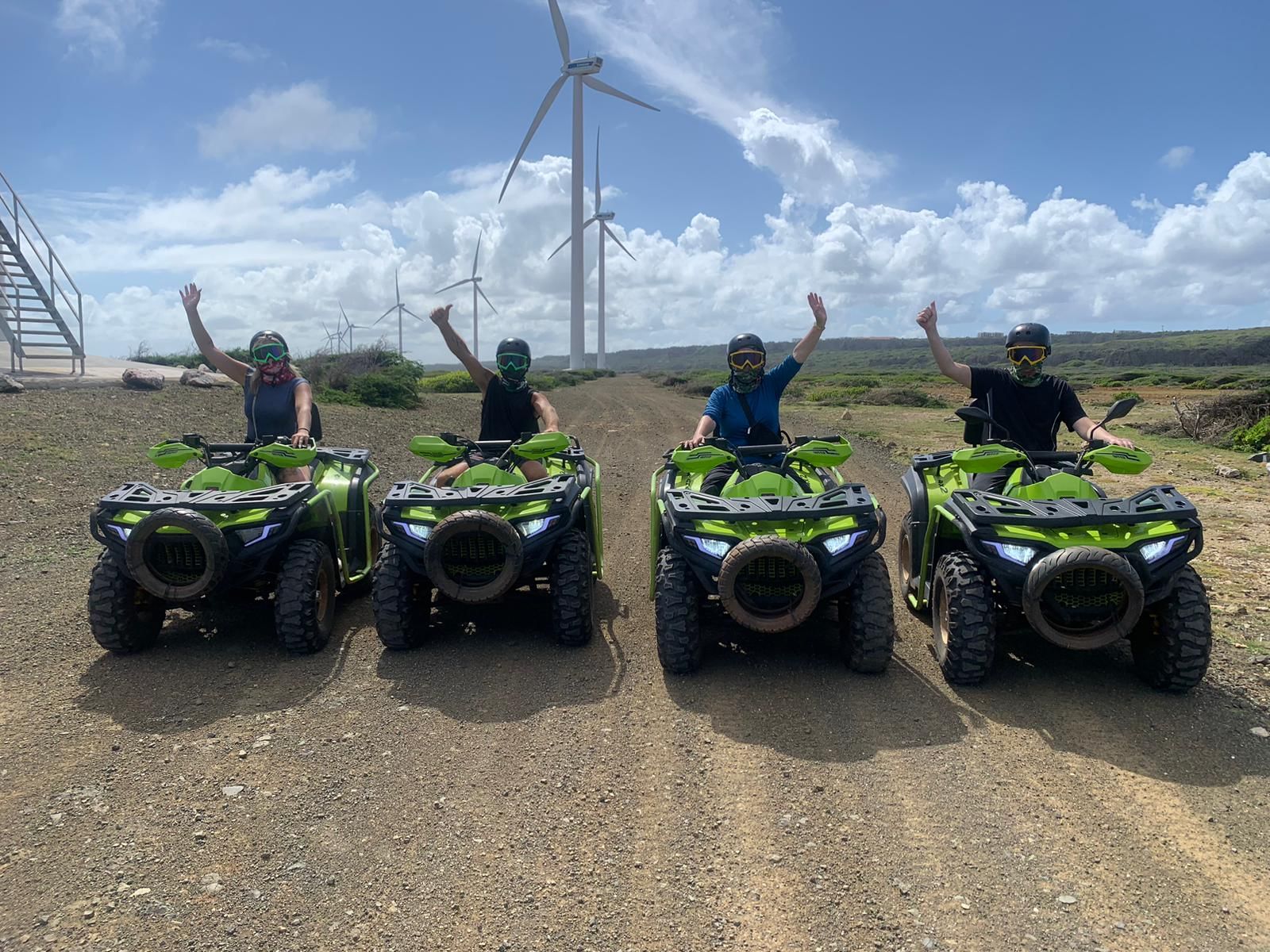 Get ready for an incredible full-day tour! You'll get to explore unforgettable parts of the Island and immerse yourself in the rich and diverse culture of Curacao! We'll visit the San Pedro Savannah and the famous caves, as well as the stunning Kenepa Grandi and Playa Kalki and of course dive with the turtles at Playa Piskadó. Dive into the crystal-clear waters and snap some of the most instagrammable pictures! Maximum weight allowed per ATV single or shared 200 kg or 440 pounds.